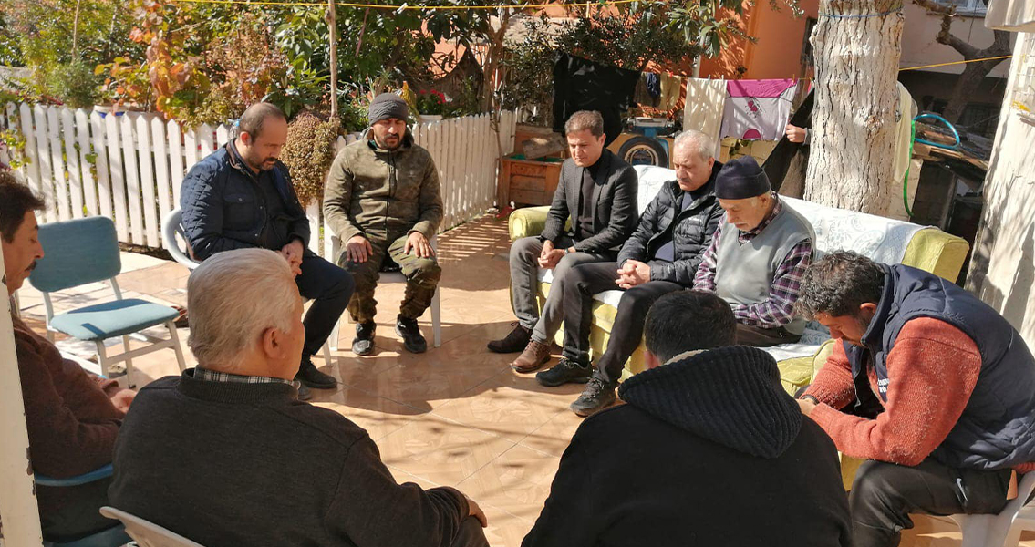 Deprem felaketinde eşi ve iki kızıyla kaybettiğimiz Hatay 1 Nolu Şube Başkan Yardımcımız Mehmet Fatih Akyürek’in acılı ailesini İskenderun’da ziyaret ederek, baş sağlığı dileklerini ileten Genel Başkan Yardımcıları Dolgun ve Kocakaplan, “Kıymetli dava ve mücadele arkadaşımız Mehmet Fatih Akyürek’in mekanı cennet olsun. Allah rahmet eylesin. Sabır diliyoruz. Allah hiç bir anne babayı evlatlarının acısıyla imtihan etmesin.” dedi.