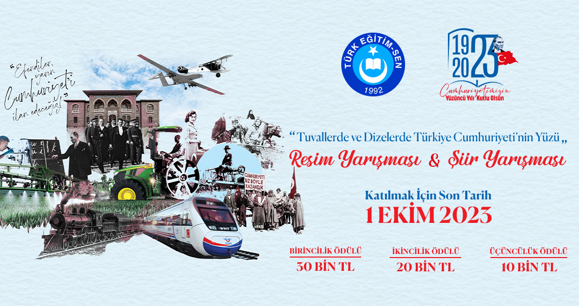 “Tuvallerde Türkiye Cumhuriyeti’nin Yüzü” Resim Yarışmasına eser göndermek isteyenlerin de 1 Ekim 2023 tarihi ve saat 17:00’ye kadar “Talatpaşa Bulvarı No:160 Kat: 6 Cebeci-Çankaya/ANKARA” adresindeki Türk Eğitim-Sen Genel Merkezi’ne elden veya kargo yoluyla eserlerini teslim etmeleri gerekmektedir.
