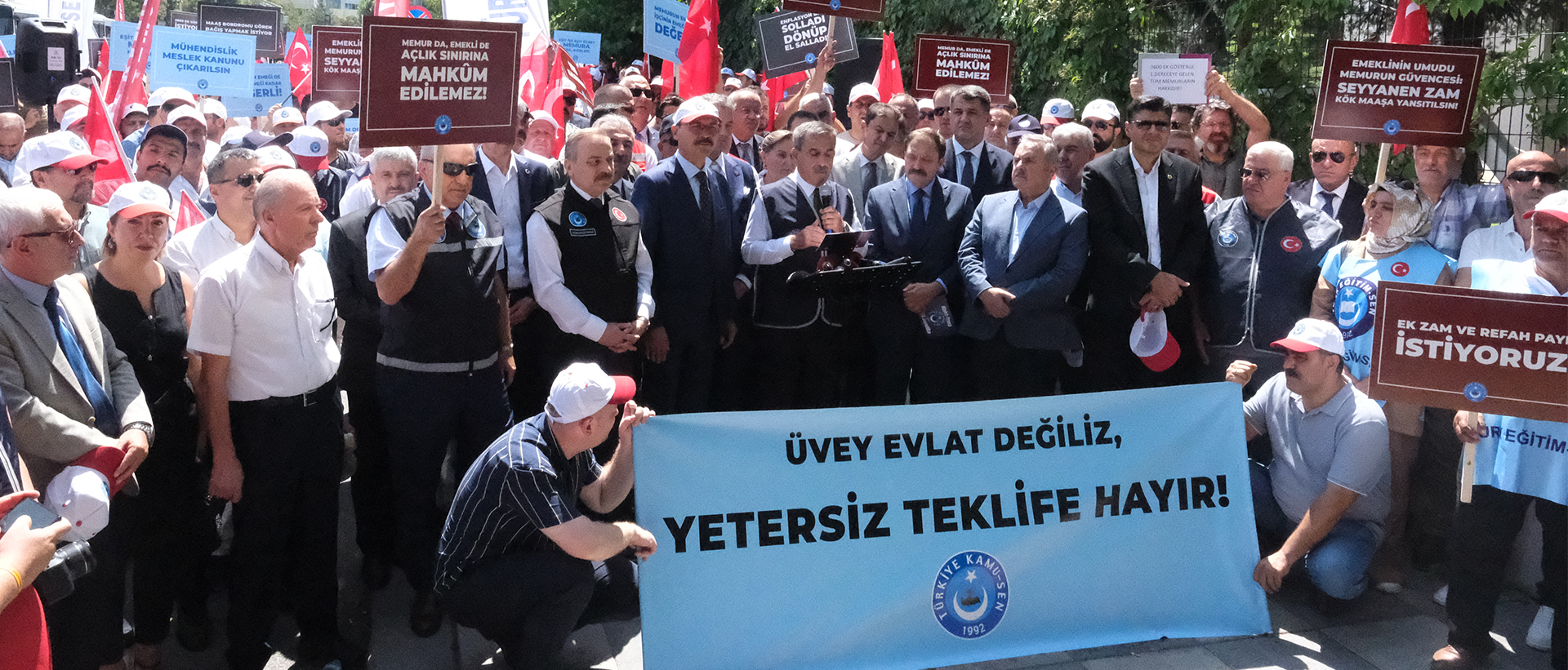 Başkent Ankara’daki basın açıklamamıza başta konfederasyon Genel Başkanımız Önder Kahveci olmak üzere sendikalarımızın genel başkanları, genel merkez yöneticilerimiz, şube başkanlarımız, üyelerimiz ve yüzlerce kamu görevlisi katıldı.